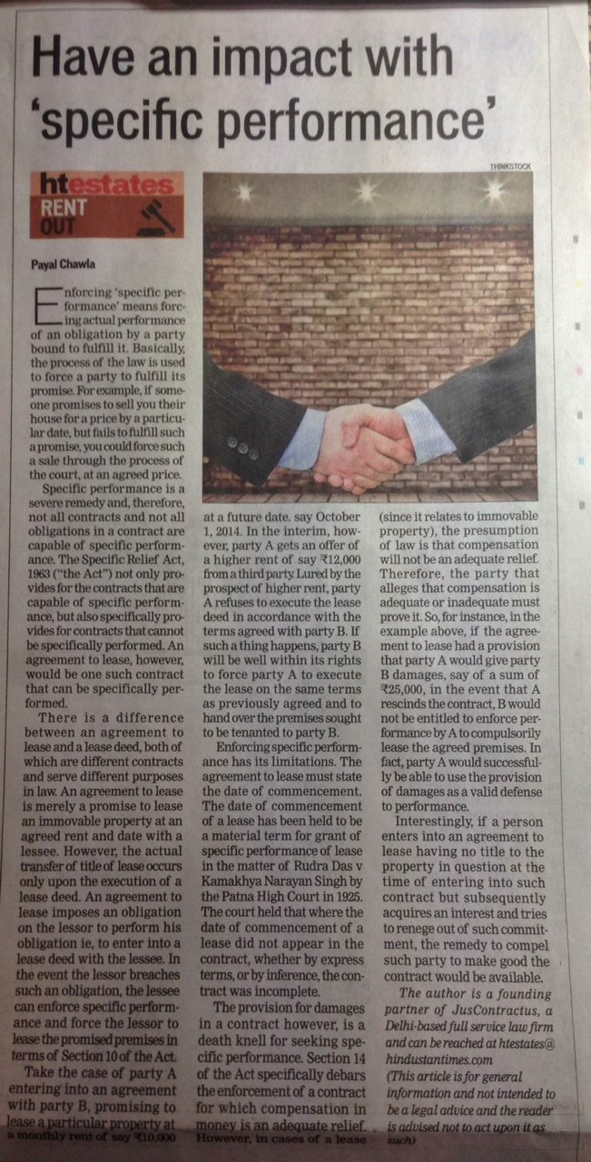 Enforcing ‘specific performance’ means forcing actual performance of an obligation by a party bound to fulfill it. Basically the process of the law is used to force a party to fulfill its promise. For example, if someone promises to sell you their house for a price by a particular date, but fails to fulfill such a sale through the process of the court, at an agreed price.