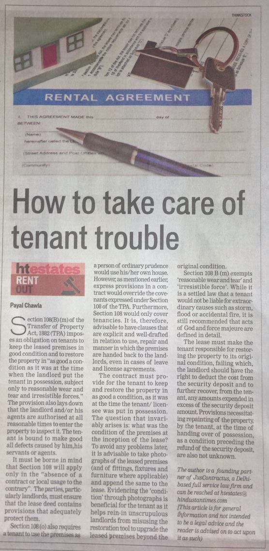 Section 108(B)(m) of the Transfer of Property Act, 1882 (TPA) imposes an obligation on tenants to keep the leased premises in good condition and to restore the property in “as good a condition as it was at the time when the landlord put the tenant in possession, subject only to reasonable wear and tear and irresistible forces.”