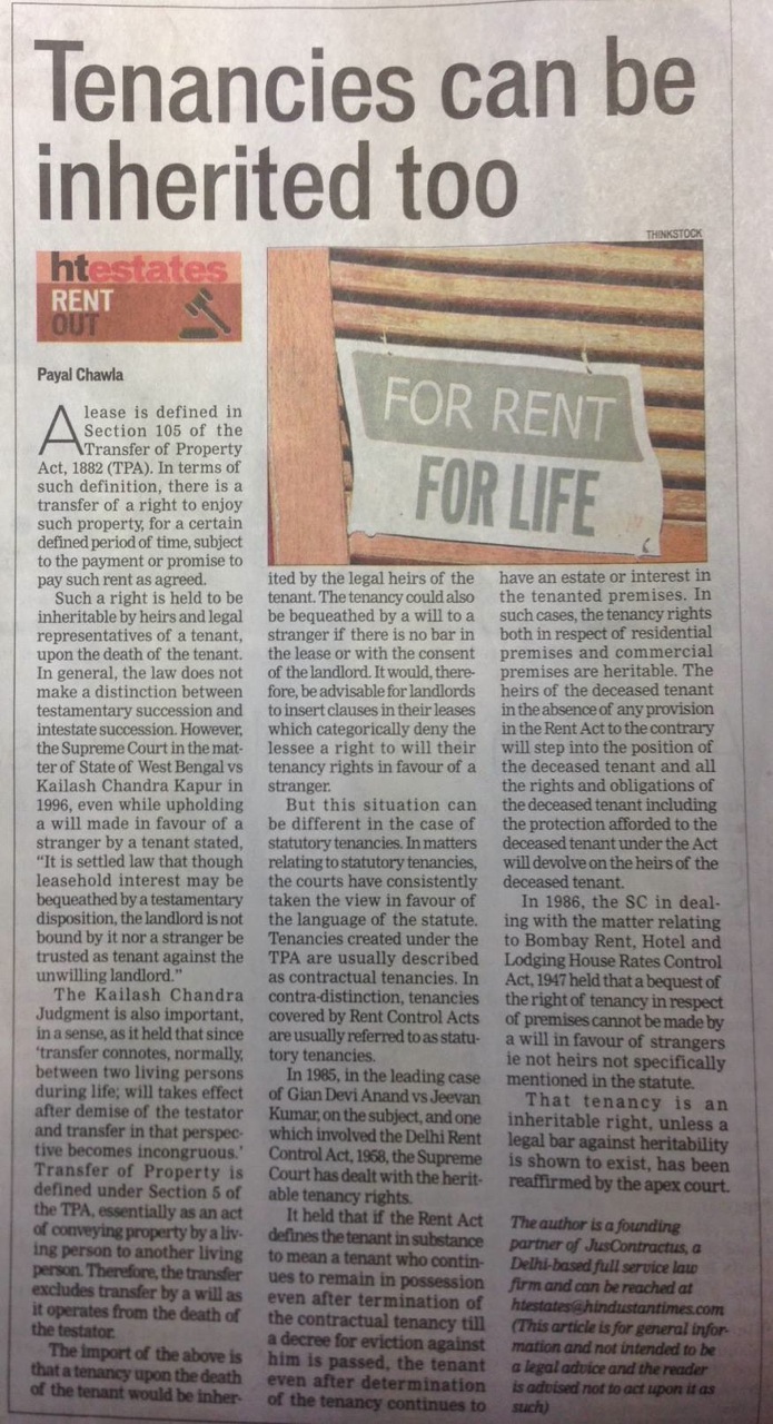 A lease is defined in Section 105 of the Transfer of Property Act, 1882 (TPA). In terms of such definition, there is a transfer of a right to enjoy such property, for a certain defined period of time, subject to the payment or promise to pay such rent as agreed.